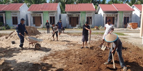 Warga kerja bakti bangun fasilitas olahraga Badminton dan Sepaktakraw